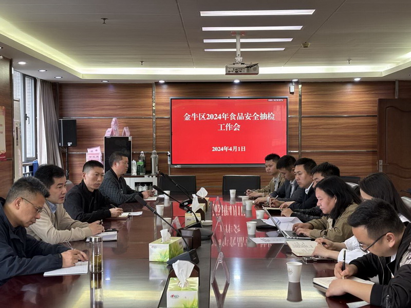 四川新闻网成都4月2日讯 为确保2024年金牛区食品安全抽检监测工作顺利开展,2024年4月1日,金牛区市场监督管理局组织召开了2024年度食品安全抽检监测工作部署会。会上,抽检科通报了2023年食品安全抽检监测工作开展情况并部署了2024年食品安全抽检监测工作;各承检机构就各自分工汇报了年度工作计划;金牛区市场监督管理局副局长钟维对全区2024年食品安全抽检监测工作提出了具体要求与期望。
