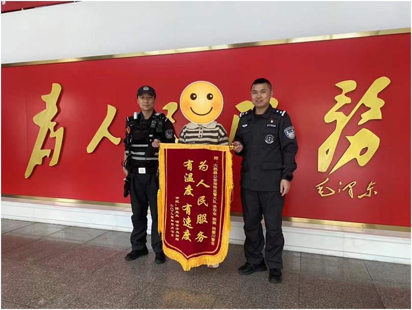四川新闻网成都4月9日讯 “感谢你们帮我找回孩子,太谢谢了,要是走丢了我都不敢想……”近日,群众喻女士将一面印有“为人民服务,有温度,有服务”的锦旗送到大邑县公安局特巡警大队副大队长李峰手里,并激动地不停说着感谢的话。