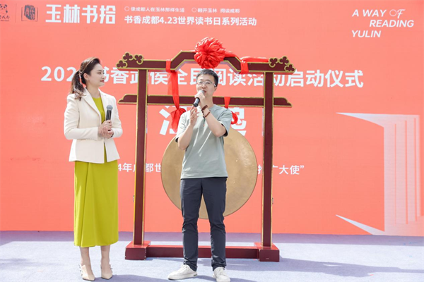 伴随着一声锣响,“玉林书拾·2024书香武侯全民阅读季”掀开序幕,诗人、中国作家协会诗歌委员会主任吉狄马加,中国当代著名作家杨红樱,中国作家协会诗刊社办公室副主任张志刚,成都市作家协会副主席彭志强,网络作家飞天鱼、姒锦等文化名人及玉林社区代表、师生代表齐聚启动仪式,打开玉林生活方式,感受书香成都的文化氛围。