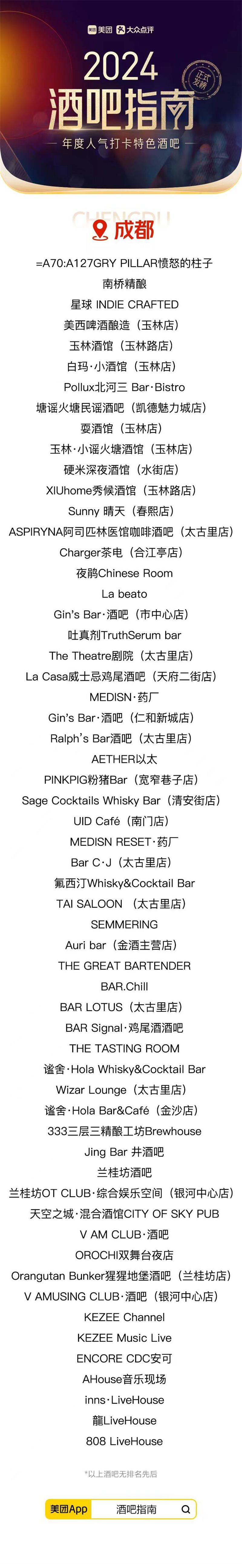 ▲美团发布2024年酒吧指南,全国40城共630家特色酒吧入选