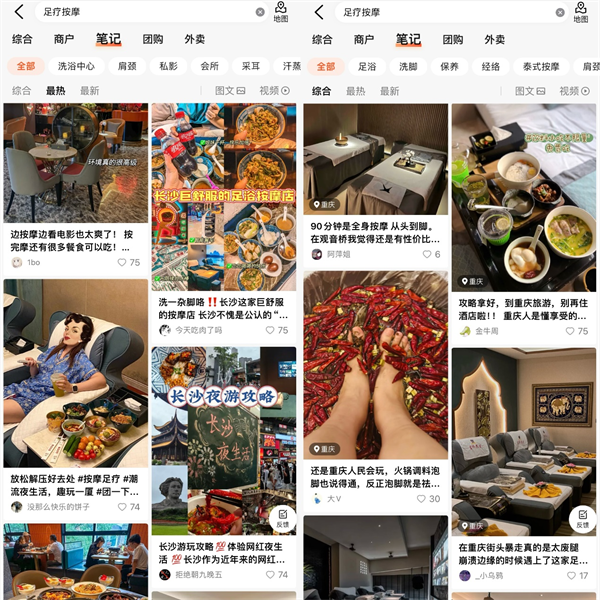 ▲年轻人分享“足疗按摩”新体验,图源:大众点评