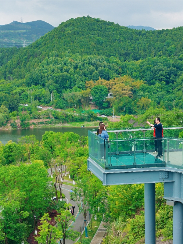 东部新区的森林面积已达56.87万亩,森林覆盖率高达43.57%。观景平台位于成都东部新区龙泉山脉丹景山山脊的最高处。丹景台月平均负氧离子浓度已达到每立方厘米1364个,妥妥的“中国天然氧吧”。