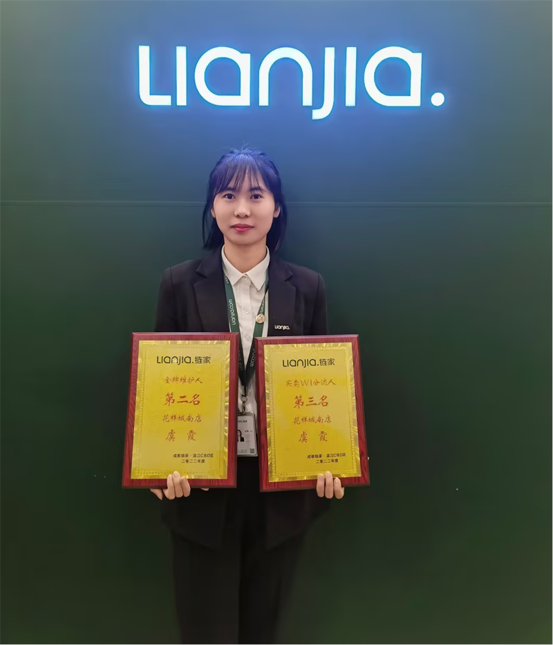 幸运的是,链家的同事们给予了她最强有力的支持,师傅的耐心带教、悉心开导;忙到无法兼顾时,伙伴们的“搭一把手”;带客户、谈房子、谈单子……一点一点积累着、进步着,虞霞为自己充值着“源源不断的能量”,她先后获得了“最佳新人奖”“五星维护人”“大区好赞标杆”等一系列荣誉奖项,她的坚持穿透了时间,终于“破茧成蝶”。