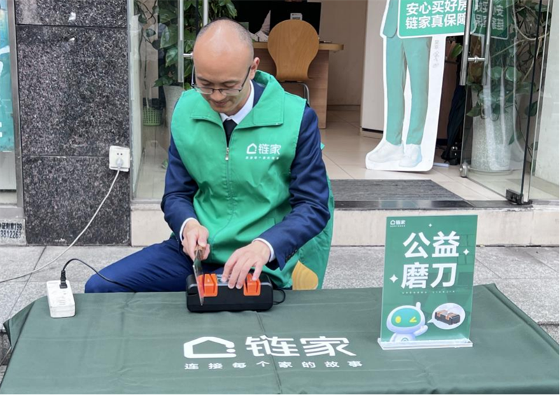 曹开春为社区邻居提供公益磨刀服务