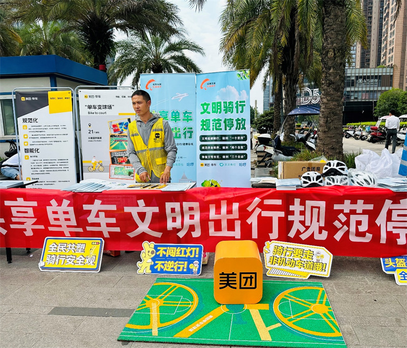 在活动中,工作人员向市民介绍车辆停放规则和方式,美团单车运维员在现场展示了文明骑行标语,演示正确的停车过程,加深市民对全流程文明使用共享单车的理解。不少市民也主动向运维人员咨询单车相关使用规范,自觉把共享单车停放至停车框内,并整齐摆放,为维护路面秩序出力。