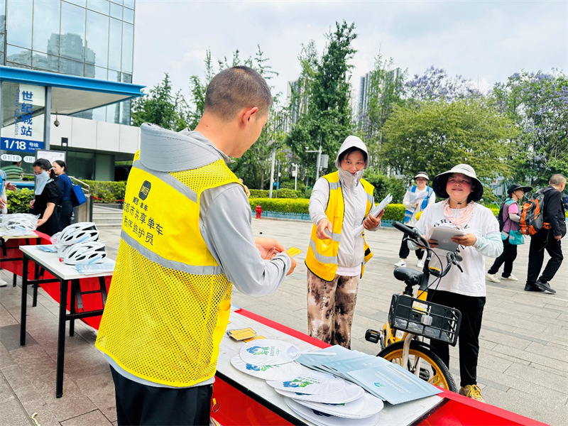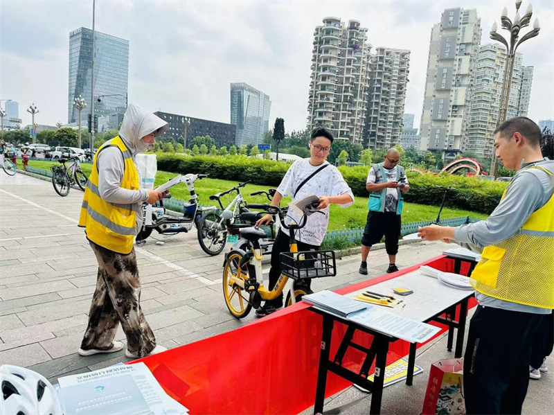 四川新闻网成都5月22日讯 5月21日,由成都高新区生态环境和城市管理局牵头,成都高新区共享单车企业积极响应主管部门倡议,以“文明骑行,规范停放”为主题,进行了系列市民互动活动,向市民倡导文明停放和共享共治的理念,倡议全民参与,推进高新区共享单车停放秩序建设。