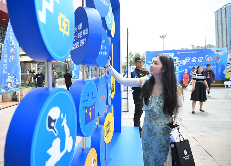 四川新闻网-首屏新闻成都7月31日讯 7月30日,在成都市青羊万达广场,一辆蓝色车身的科普车吸引了众多市民的注意。安全记心中·电动自行车安全科普活动在此举办。
