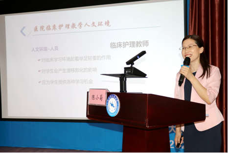 此次培训由成都医学院护理实验教学中心主任陈小菊副教授授课,她以《临床护理教学》为题,就临床护理教学概述、临床护理教学组织形式、临床护理教学挑战与改进等方面进行理论授课。培训讲座语言丰富生动,内容深入浅出,为临床教师进行临床教学提供了积极的指导作用和理论依据。
