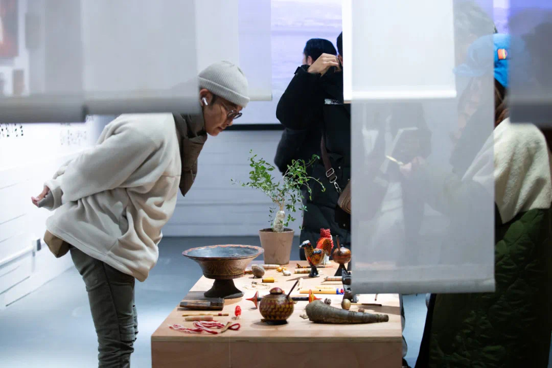 出生在大凉山的莫西子诗,对故土的情感不仅表现在这批摄影作品的主题中,也相当诗意地融入了此次展览的现场布展中——展厅中央有张桌子,上面摆满了他精心收集的小物件,有彝族人喝酒的牛角杯、手工民族小乐器等。