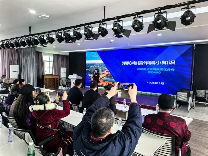 3月21日,徽商银行成都分行携手成都市公安局武侯分局走进四川大学共同举办“AI时代 反诈同行”校警银联动反诈宣传讲座,活动通过知识宣讲、案例解析、互动问答等形式,将反诈防线延伸至群众身边,切实提升群众防范意识,守护老百姓的“钱袋子”。近百名四川大学离退休教职工参加此次讲座。